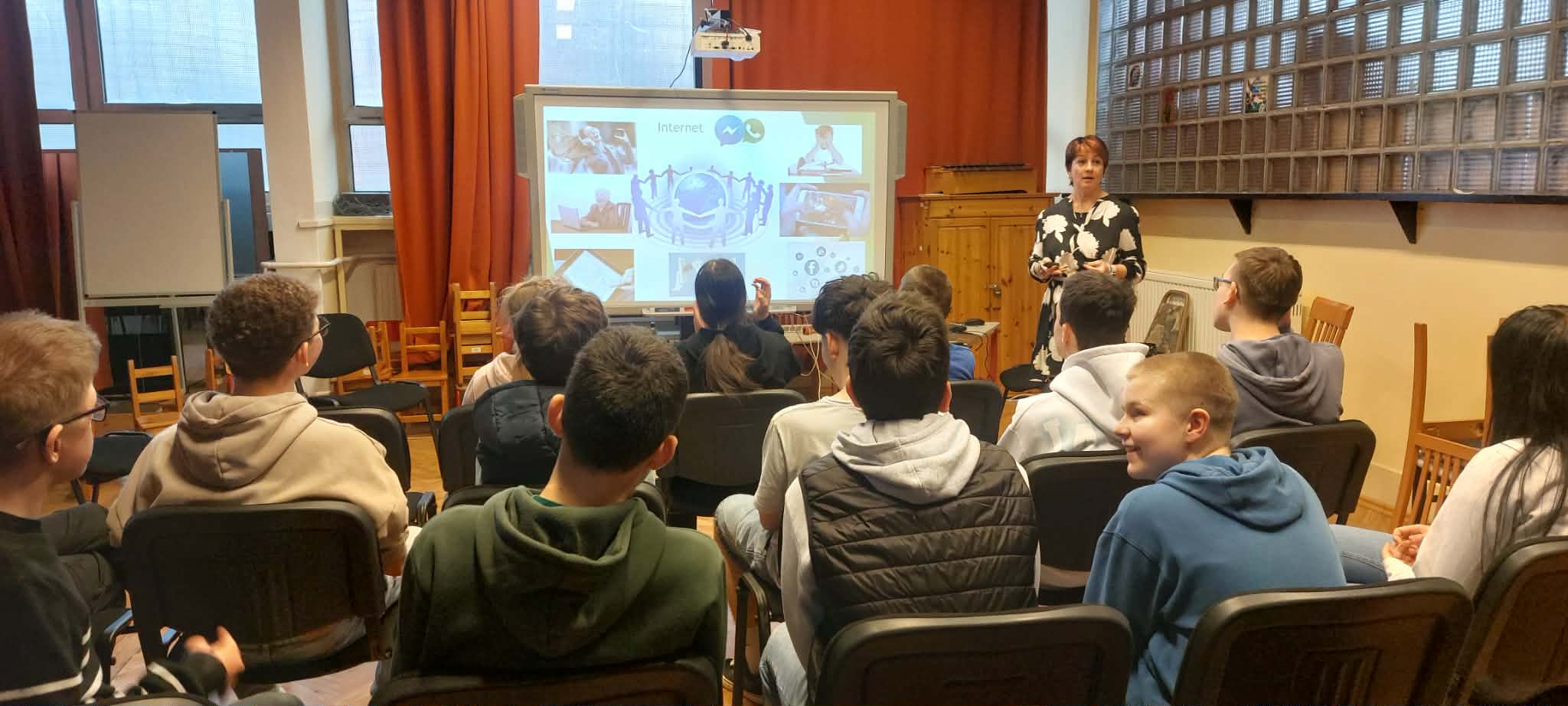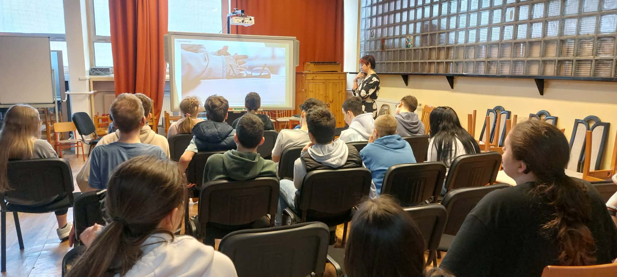 Iskolánkban 2026. március 23-án az online biztonság témájában szerveztünk előadást diákjaink számára a Diákönkormányzat közreműködésével. A program vendége Sebőkné Barad Márta nyomozó, bűnmegelőzési előadó volt, aki tartalmas és szemléletes előadásával segítette a tanulók tájékozódását a digitális világ veszélyeiről.